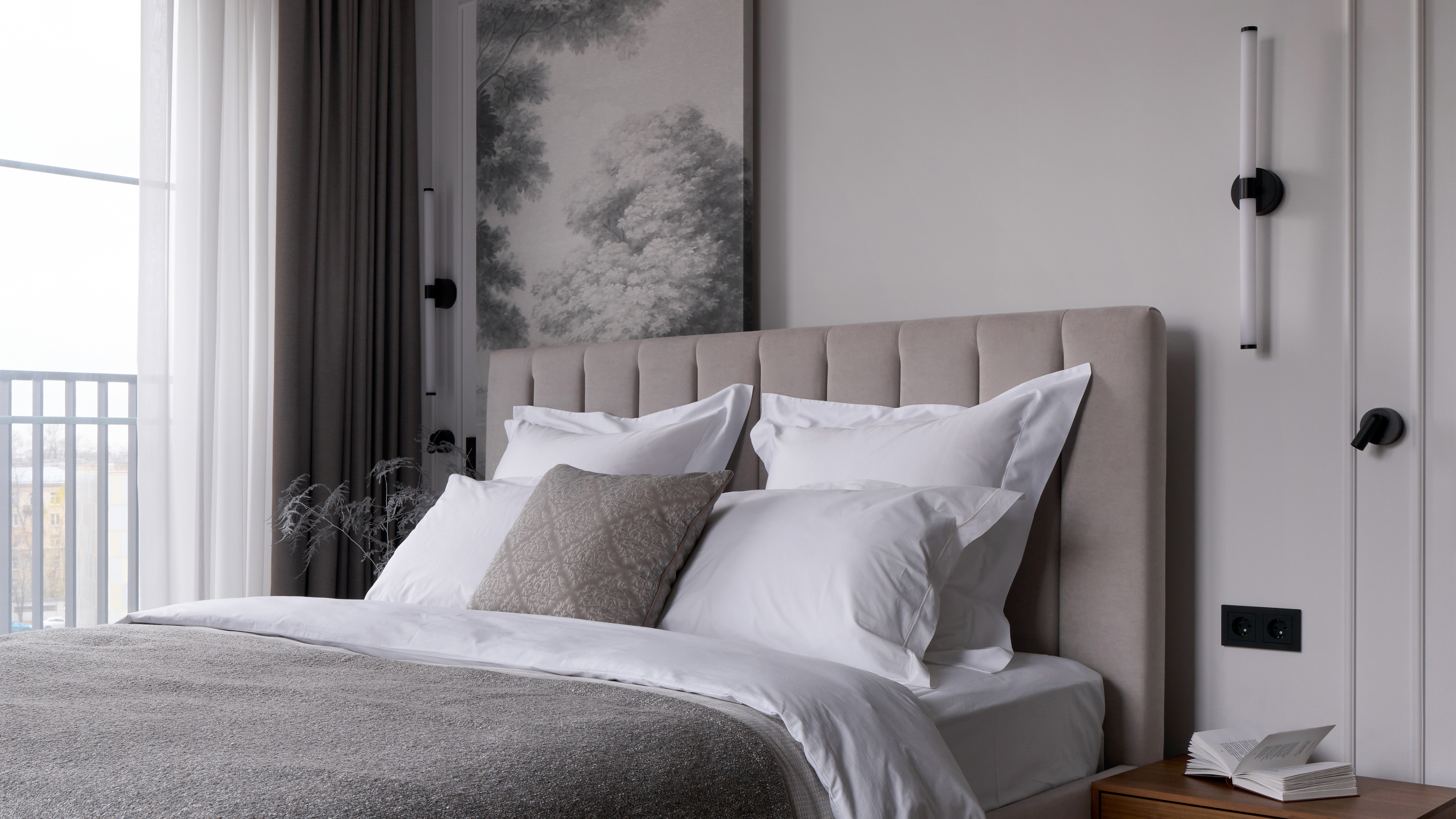 Строгая форма белых матовых светильников. Три цвета арматуры: белый, черный и золотой.