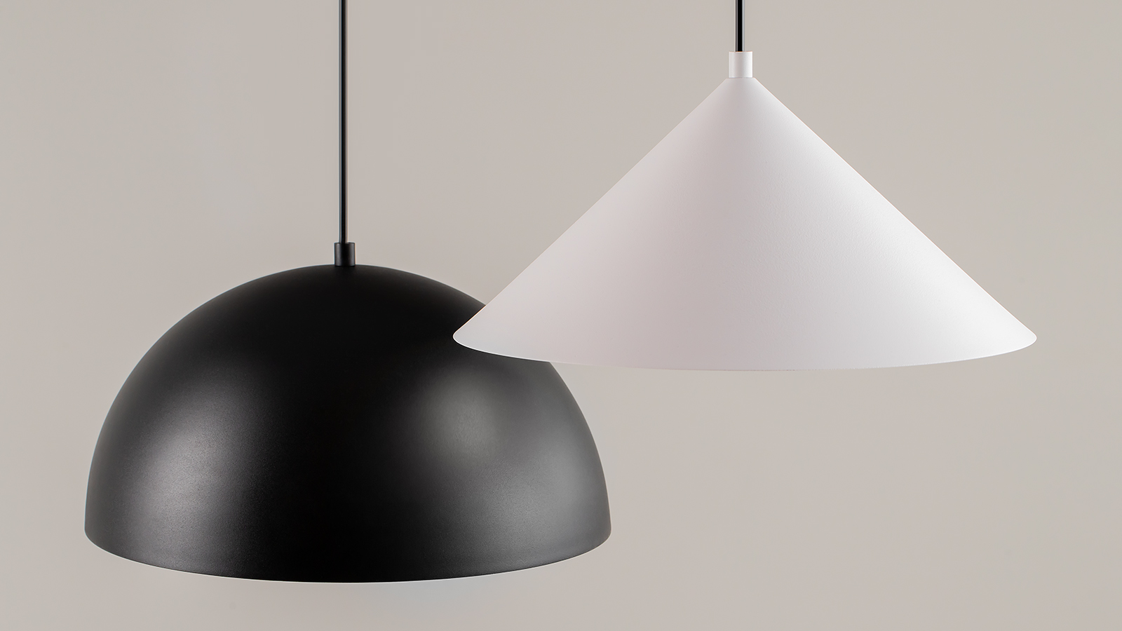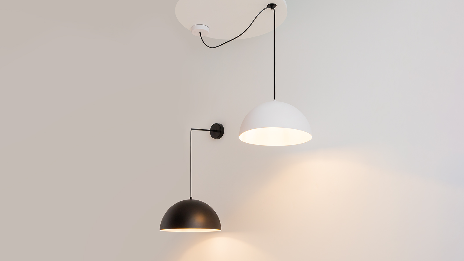 Универсальная форма абажуров и монохромная палитра позволяют собирать композиции из нескольких светильников