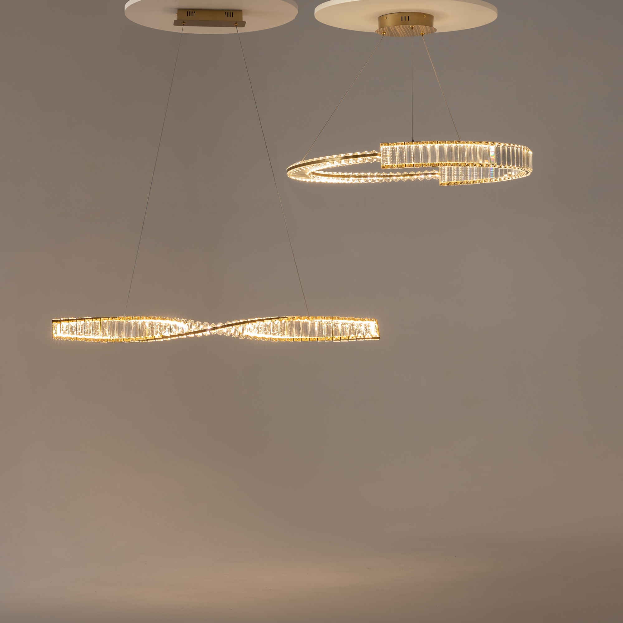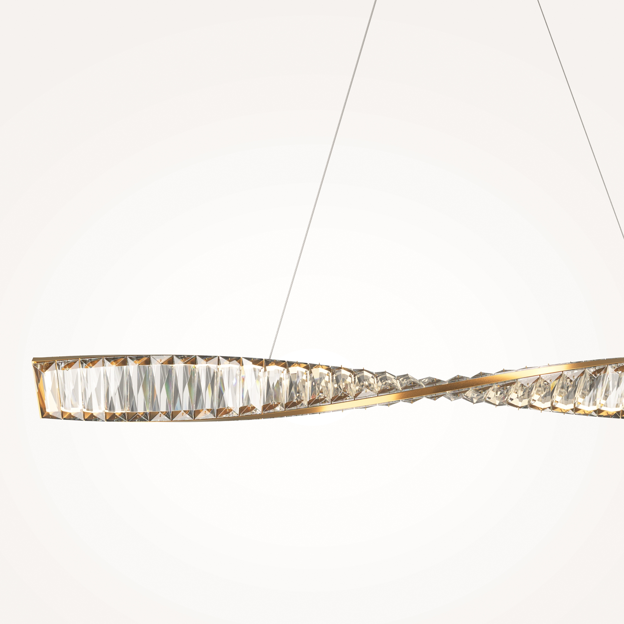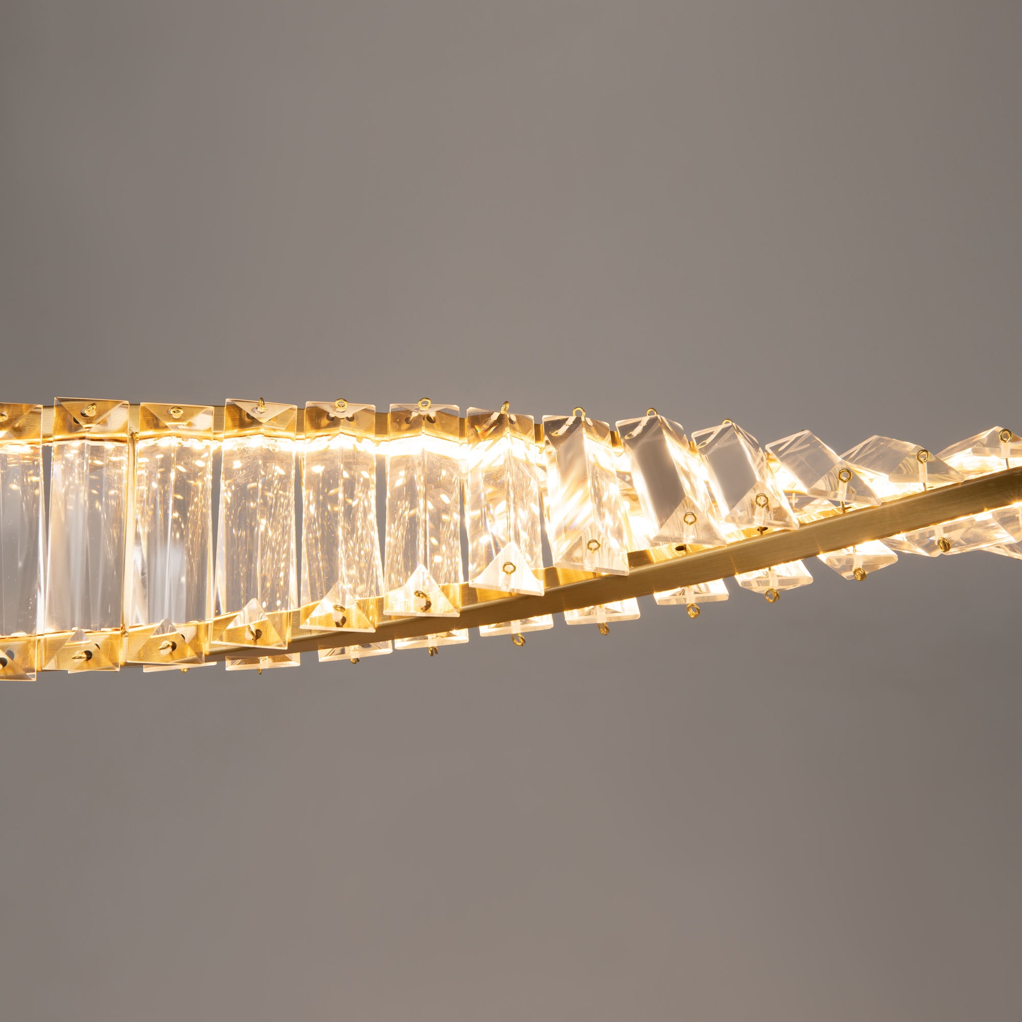Яркий выразительный облик серии Krone - это новый взгляд на актуальные дизайнерские тренды. Главная особенность – асимметричное расположение хрустального декора. Трендовый прием позволяет получить интересный светотеневой рисунок, добавляет дизайну уникальность. Металлическая арматура латунного цвета обрамляет декоративные элементы подобно ювелирному украшению, создавая праздничный образ. LED-источник света обеспечивает равномерную яркую подсветку, подчеркивая оригинальный силуэт. Высокий индекс цветопередачи 90Ra не искажает восприятие оттенков. В серию входят подвесные модели различного диаметра и с разным количеством ярусов, подвесной светильник в виде спирали, а также вытянутые по горизонтали подвесные светильники разной длины. Эклектичный дизайн актуален как для современных, так и классических интерьеров: праздничного ар-деко, неоклассики, фьюжн, сдержанного контемпорари или mid-century.