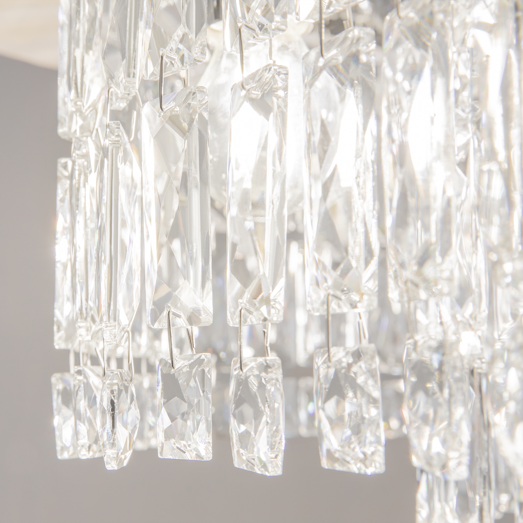 Отражаясь в кристаллах, свет образует индивидуальное свечение на потолке.